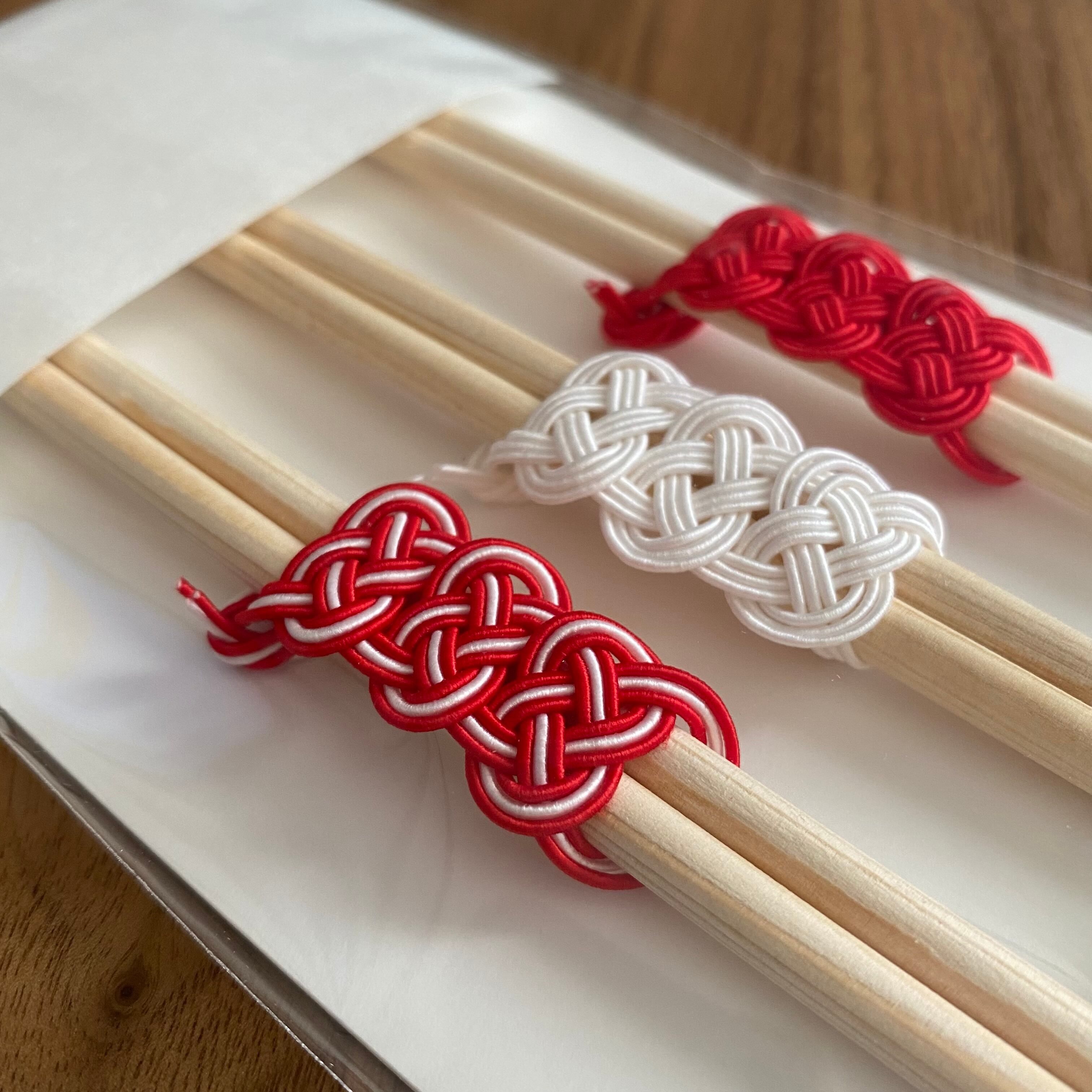 「心を結ぶ、縁を結ぶ」という意味が込められた水引をお箸にあしらいました。