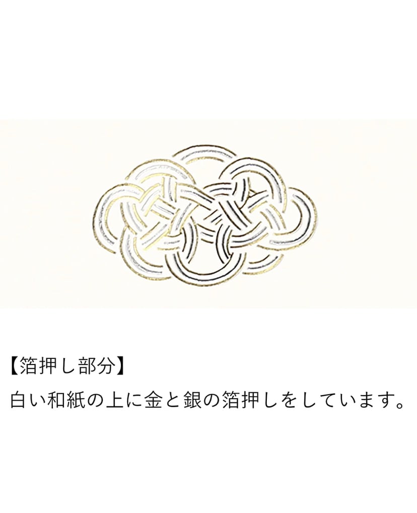 生成り色の和紙に、金と銀の箔押しで水引の結びの形をつくりました。